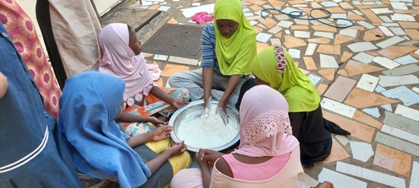 It was a busy day in the kitchen as the group gathered to make chapatis from scratch. Learning to cook traditional meals is a key part of their routine, teaching them responsibility and the joy of creating a meal to share with their friends.”